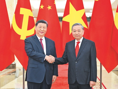 习近平强调,今年是中越建交75周年暨“中越人文交流年”。75年来,无论国际风云如何变化,双方在争取国家独立和民族解放的斗争中相互支持,在社会主义建设事业中携手并进,在推进各自现代化进程中砥砺前行,成为社会主义国家团结合作的典范。面对变乱交织的国际形势,中越两国坚持和平发展,深化友好合作,为世界带来了宝贵的稳定性和确定性。站在新的历史起点上,双方要继往开来、携手前行,赓续“越中情谊深、同志加兄弟”的传统友谊,按照政治互信更高、安全合作更实、务实合作更深、民意基础更牢、多边协调配合更紧、分歧管控解决更好的“六个更”总体目标,高质量推动全面战略合作,确保中越命运共同体建设行稳致远,为构建人类命运共同体作出新的更大贡献。
