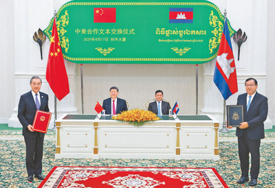 本报金边4月17日电 (记者李婕、白元琪)4月17日晚,国家主席习近平同柬埔寨首相洪玛奈在金边和平大厦举行会谈。两国领导人一致同意携手构建新时代全天候中柬命运共同体,宣布2025年为“中柬旅游年”。