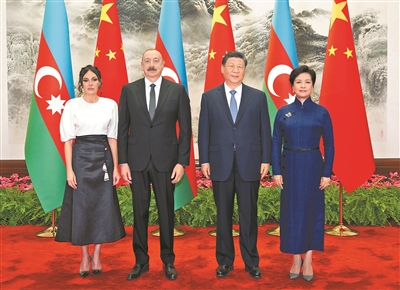四月二十三日上午,国家主席习近平在北京人民大会堂同来华进行国事访问的阿塞拜疆总统阿利耶夫举行会谈。这是习近平和夫人彭丽媛同阿利耶夫和夫人阿利耶娃合影。 |