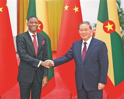 李强指出,中方愿同格方加强发展战略对接,以高质量共建“一带一路”为引领,深化农业、基础设施建设、医疗卫生等传统领域合作,积极探讨在新能源、数字经济、蓝色经济等新兴领域打造更多合作亮点,推动两国互利合作提质升级。中方鼓励有条件的中国企业赴格投资兴业。双方要继续加强旅游、文化、教育、媒体等领域交流合作。中方愿帮助格林纳达等加勒比国家提升应对气候变化能力,推动《联合国气候变化框架公约》及其《巴黎协定》全面有效实施。中方愿同格方携手推动中拉命运共同体建设不断走深走实,共同捍卫全球南方利益,推动构建人类命运共同体。