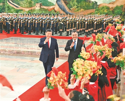 习近平指出,中国和吉尔吉斯斯坦山水相依、民心相亲,是好邻居、好朋友、好伙伴。近年来,中吉关系实现跨越式发展,达到新时代全面战略伙伴的新高度。双方政治互信持续巩固,各领域合作喜讯频传,构建中吉命运共同体的社会和民意基础日益牢固。中方支持吉方走符合本国国情的发展道路,愿同吉方深化发展战略对接,扩大治国理政经验交流,推进全方位互利合作,携手维护两国共同利益,推动中吉命运共同体建设更好落地走实。