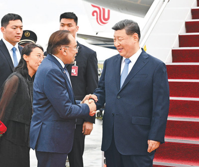 专机抵达吉隆坡国际机场时,马来西亚总理安瓦尔,外交部部长穆罕默德,陪同部长、交通部部长陆兆福等高级官员热情迎接。马来西亚儿童向习近平献花,马来西亚青少年表演富有当地特色的舞蹈,挥舞中马两国国旗,热烈欢迎习近平到访。