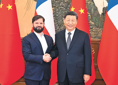 博里奇表示,智利高度重视对华关系。中国已成为智利最重要的贸易伙伴,双方合作造福了两国人民。智方将坚定奉行一个中国原则,期待与中方进一步拓展贸易、投资、人工智能等领域合作,高质量共建“一带一路”,密切人文交流,推动智中关系取得更多实实在在的成果。各国应坚持自由贸易和互利共赢,贸易不应只服务于一国私利,发动贸易战没有出路。智方愿同中方一道,坚定捍卫多边主义和联合国权威,坚持通过对话解决分歧,共同维护国际公平正义。