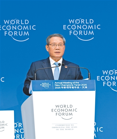 六月二十五日上午,国务院总理李强在天津出席二〇二五年夏季达沃斯论坛开幕式并致辞。 |
