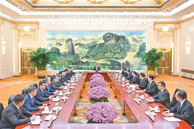七月十五日上午,国家主席习近平在北京人民大会堂集体会见来华出席上海合作组织成员国外长理事会会议的各国外长和常设机构负责人。 |