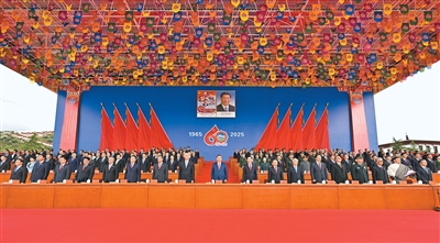 王沪宁发表讲话。他说,1965年9月,在党中央亲切关怀和党的民族政策光辉照耀下,西藏自治区宣告成立。这是西藏发展史上具有划时代意义的大事,巩固了西藏和平解放和民主改革的伟大成果,实现了西藏社会制度的历史性跨越。60年来,西藏经济社会全面发展,民族区域自治制度成功实践,民族团结日益巩固,各族人民生活蒸蒸日上,充分展现了中国共产党领导的坚强力量,充分展现了我国社会主义制度的显著政治优势。